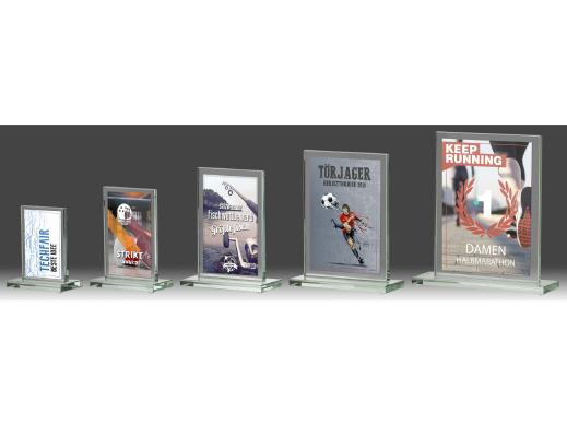 preisgünstiger Glasaufsteller in 5 Größen von 10 bis 20 cm Höhe. Ihr Bild bzw Grafik wird auf eine sehr dünne Platte gedruckt und auf das Glas geklebt. Sie haben volle Gestaltungsfreiheit und erhalten vor Produktion ein Vorschau-Foto
